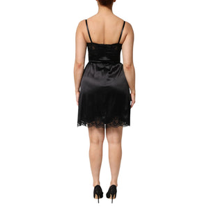 Dolce & Gabbana Black Silk Blend Lace Trim Sleeveless Mini Dress