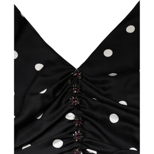 Dolce & Gabbana Black Silk Polka Dot V-neck Tassel Midi Dress