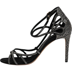 Dolce & Gabbana Black Strass Ankle Strap Heels Sandals Shoes