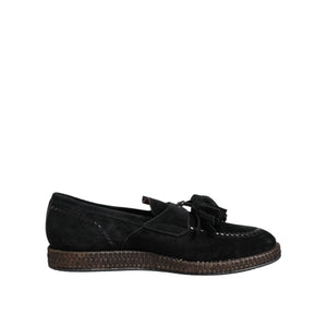 Dolce & Gabbana Black Suede Tassel Embellished Loafers Shoes