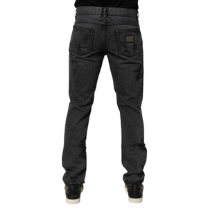 Dolce & Gabbana Black Tattered Skinny Cotton Men Denim Jeans