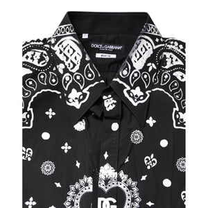 Dolce & Gabbana Black White Bandana MARTINI Men Dress Shirt