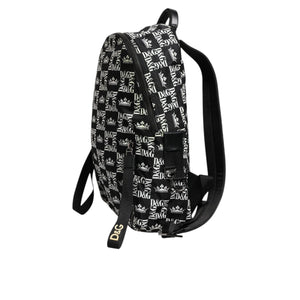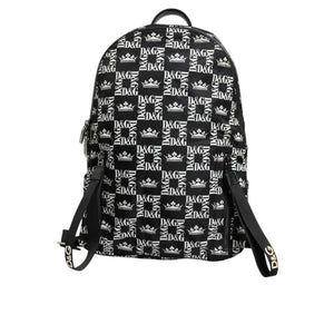Dolce & Gabbana Black White Crown Printed Nylon School Backpack Bag