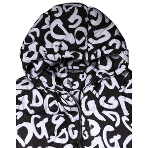 Dolce & Gabbana Black White DG Mania Hooded Long Coat Jacket