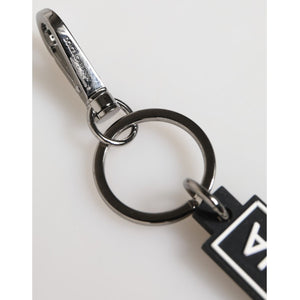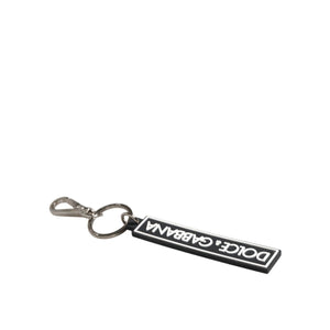 Dolce & Gabbana Black White DG Rubber Logo Silver Men's Holder Keyring