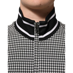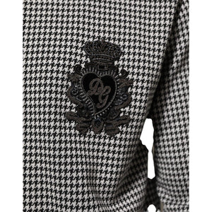 Dolce & Gabbana Black White Houndstooth Wool Crest Jacket Sweater