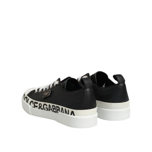 Dolce & Gabbana Black White Leather Low Top Sneakers Shoes