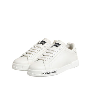 Dolce & Gabbana Black White Leather Portofino Sneaker Shoes