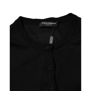 Dolce & Gabbana Black Wool Knit Crew Neck Cardigan Sweater