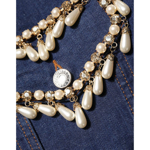 Dolce & Gabbana Blue Cotton Denim Crystal Embellished Jacket