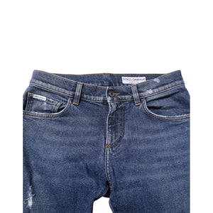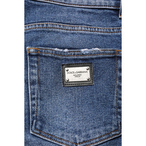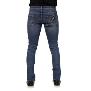 Dolce & Gabbana Blue Cotton Logo Plaque Skinny Men Denim Jeans