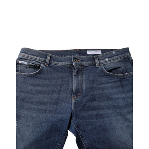 Dolce & Gabbana Blue Cotton Mid Waisted Straight Denim Jeans