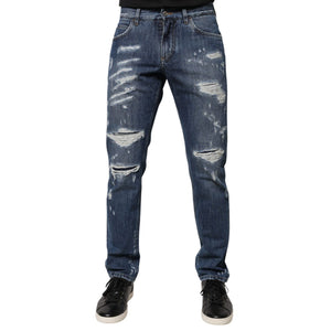 Dolce & Gabbana Blue Cotton Tattered Skinny Denim Jeans
