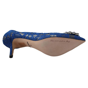 Dolce & Gabbana Blue Lace Crystal Ballet Pumps Shoes