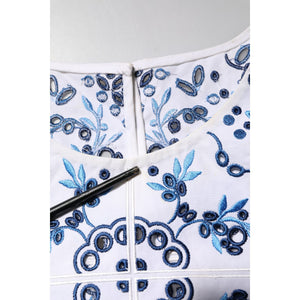 Dolce & Gabbana Blue Lace Eyelet Crew Neck Blouse Top