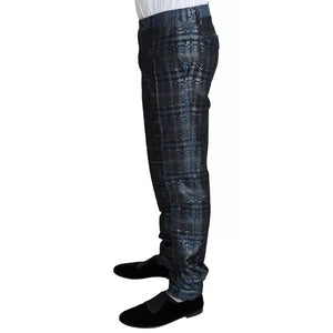 Dolce & Gabbana Blue Silver Shiny 2 Piece Slim GOLD Suit
