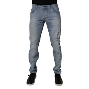 Dolce & Gabbana Blue Tattered Cotton Skinny Men Denim Jeans