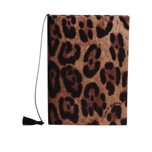 Dolce & Gabbana Brown Black Polyester Leopard Logo Print Small Notebook