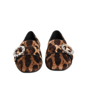 Dolce & Gabbana Brown Leopard Print Crystals Loafers Flats Shoes