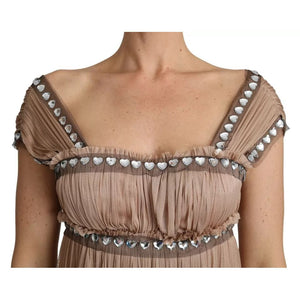 Dolce & Gabbana Brown Silk Sleeveless Shift Maxi Dress