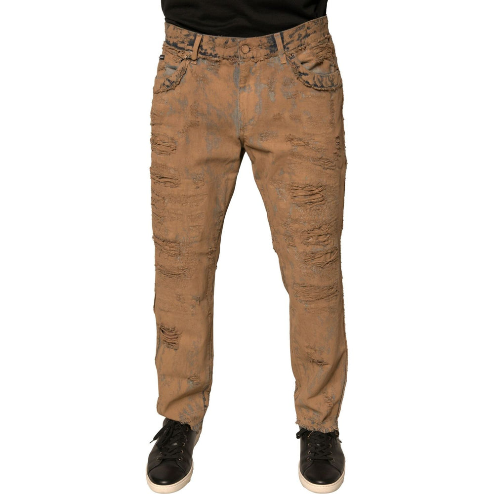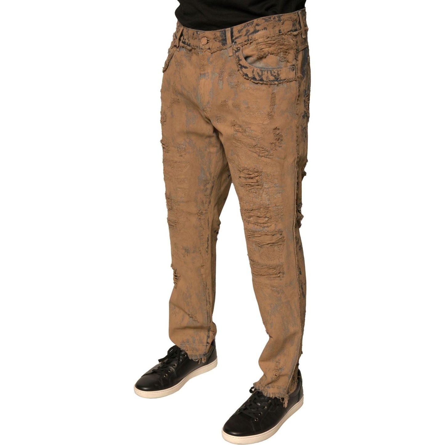 Dolce & Gabbana Brown Tattered Cotton Skinny Denim Jeans