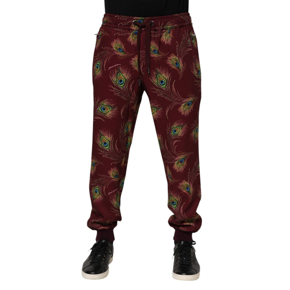 Dolce & Gabbana Burgundy Peacock Feather Print Jogger Pants