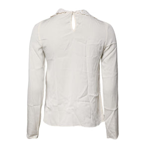 Dolce & Gabbana Cream Floral Lace Long Sleeves Blouse Top
