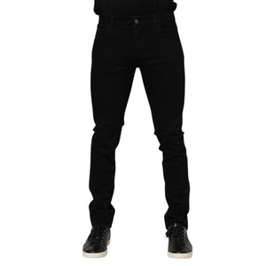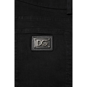 Dolce & Gabbana Dark Blue Cotton Logo Plaque GOLD Denim Jeans