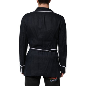 Dolce & Gabbana Dark Blue DG Embroidery Jacket Robe Blazer