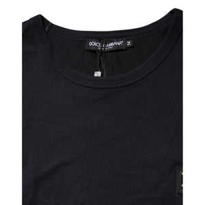Dolce & Gabbana Dark Blue Logo Plaque Cotton Crewneck T-shirt