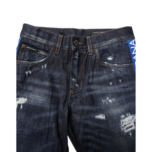 Dolce & Gabbana Dark Blue Tattered Skinny Denim Jeans