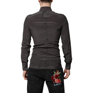 Dolce & Gabbana Dark Gray Silk GOLD Dress Formal Shirt