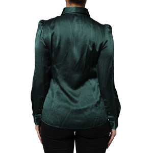 Dolce & Gabbana Dark Green Silk Button Down Long Sleeves Blouse Top