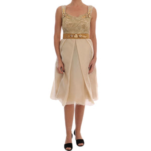 Dolce & Gabbana Gold Silk Crystal Embellished Dress