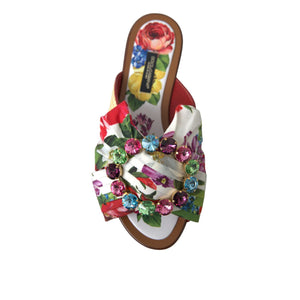 Dolce & Gabbana Multicolor Floral Flats Crystal Sandals Shoes