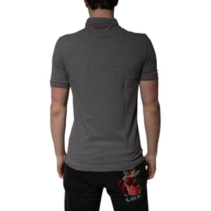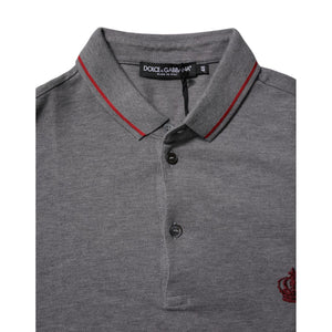 Dolce & Gabbana Gray Cotton Crown Collared Polo T-shirt