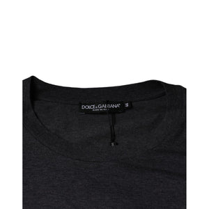 Dolce & Gabbana Gray Logo Patch Cotton Crew Neck T-shirt
