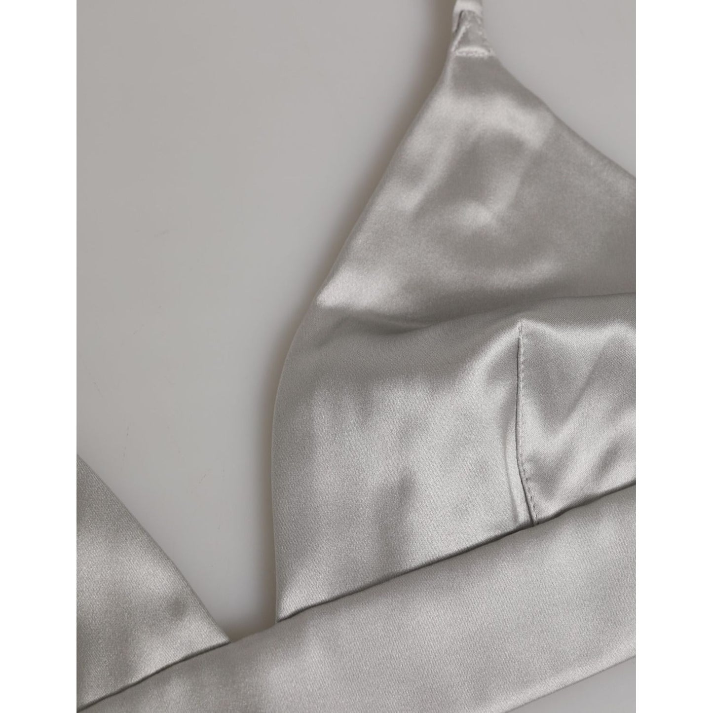 Dolce & Gabbana Gray Silk Satin Triangle Soft Cup Bra Underwear