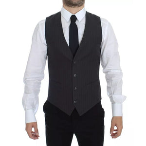 Dolce & Gabbana Gray Striped Formal Dress Gilet Vest