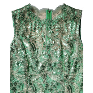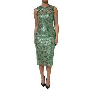 Dolce & Gabbana Green Cotton Floral Lace Sheath Midi Dress