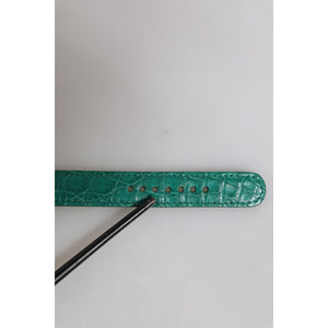 Dolce & Gabbana Green Exotic Leather Gold Tone Metal Buckle Armband