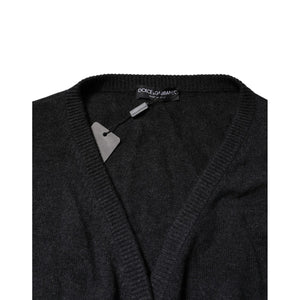 Dolce & Gabbana Grey Cashmere Deep V-neck Pullover Sweater