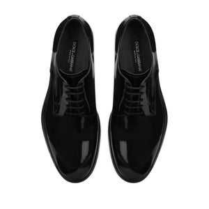 lace-up patent-finish derby shoes from DOLCE & GABBANA featuring black, calf leather, patent finish, tonal stitching, almond toe, front lace-up fastening, branded leather insole and flat leather sole. Leather brogues Size and Fit - Heel 1,2 in / 3 cm; Platform 0,6 in / 1,5 cm