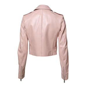 Dolce & Gabbana Light Pink Collar Leather Women Biker Jacket