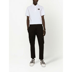 white cotton piqué weave logo plaque polo collar short sleeves straight hem Logo cotton polo shirt