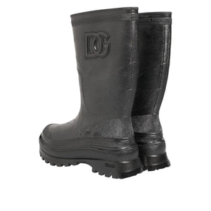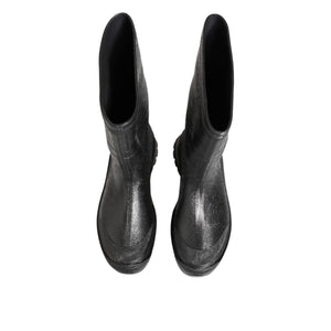 Dolce & Gabbana Metallic Black Pull On Rain Boots Shoes