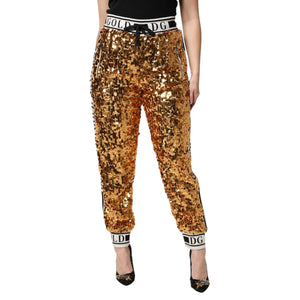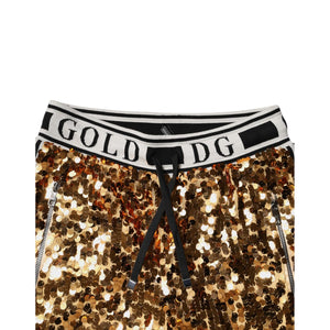Dolce & Gabbana Metallic Gold DG Logo Sequined Jogger Pants