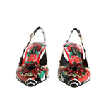 Dolce & Gabbana Multicolor Leather Crystal Heels Slingback Shoes