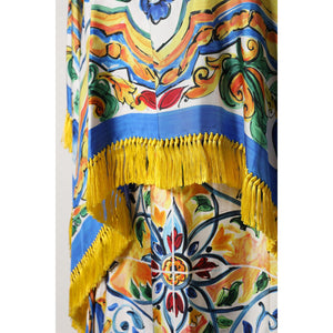 Dolce & Gabbana Multicolor Majolica Kaftan Short Sleeves Maxi Dress