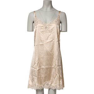 Dolce & Gabbana Nude Chemise Lingerie Silk Blend Lace Trim Dress